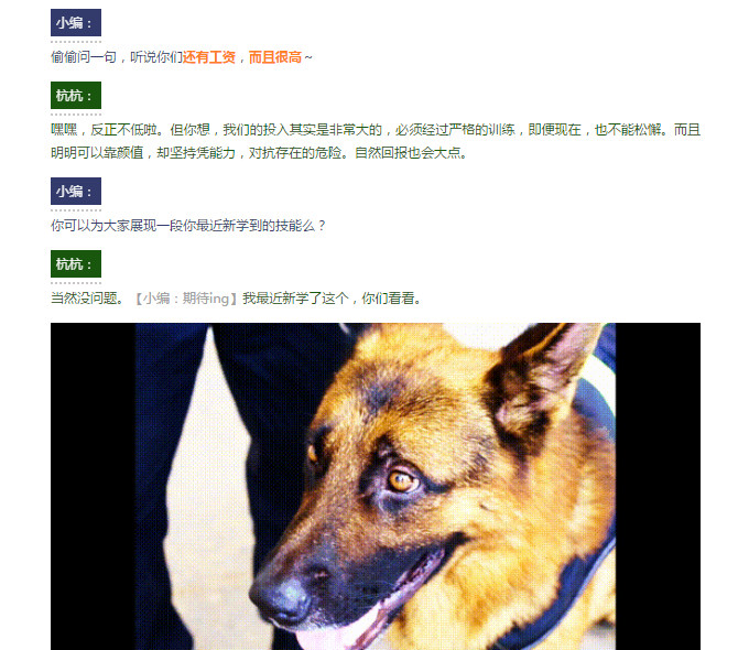 我公司特种犬进驻平安金融中心,以下是平安编辑对狗狗们的采访,请欣赏一下: