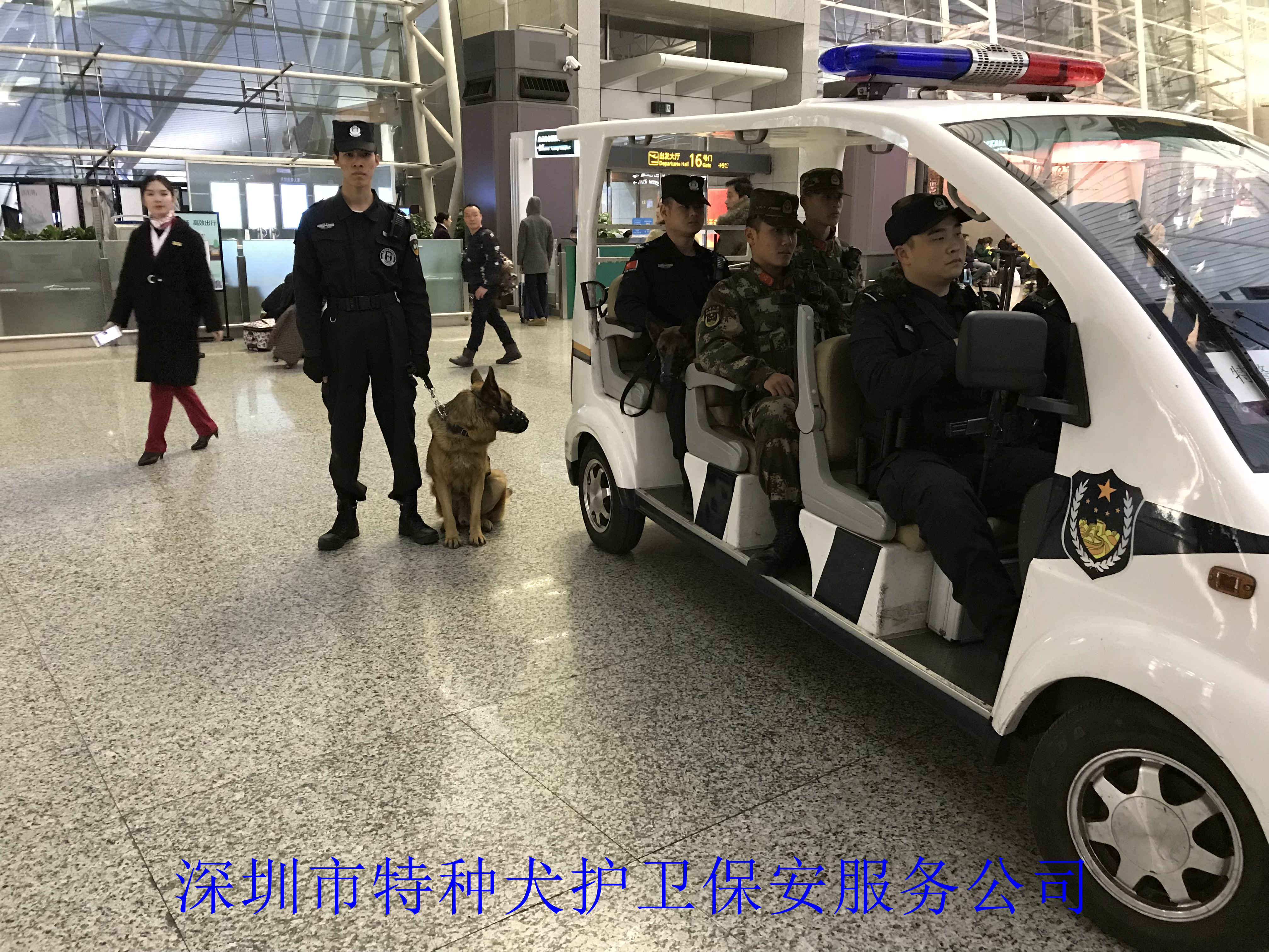 我公司犬防进驻广州白云机场,承担着机场航站楼的治安防控防暴犬巡逻、爆炸物品搜索和检查任务。